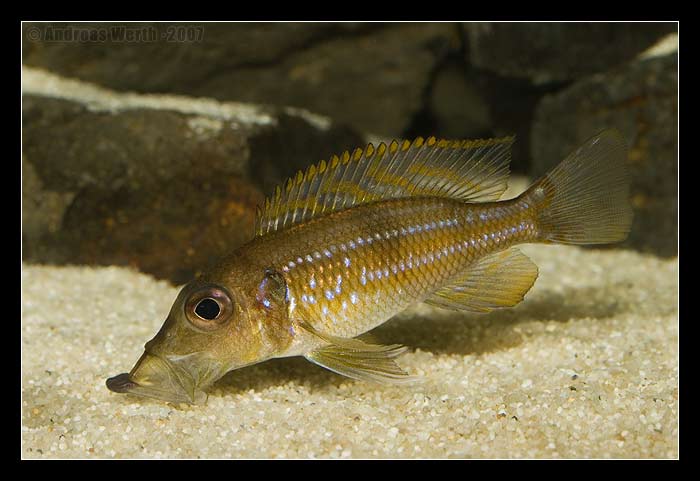 Ciclide non molto diffuso, vista la difficile reperibilità, ma dal comportamento molto interessante. Andrebbe allevato in coppia(se non si dispone di una coppia affiatata bisognerebbe partire da un gruppo di giovani esemplari) con l'acquario arredato con un abbondante strato di sabbia e alcune rocce, per stimolare la riproduzione si potrebbe interrare sotto la sabbia e le rocce qualche tubo in pvc chiuso da un lato(abbastanza grande per permettere ai pesci di girarsi ed uscire) che sarebbe usato come tana dalla coppia. Pesce pacifico che nonostante la taglia importante potrebbe essere intimorito e stressato da specie più aggressive tipo i ciclidi del genere neolamprologus, compagni ideali sono i cyprichromis, paracyprichromis e se la vasca è sufficientemente spaziosa anche quanche psammofilo tipo xenotilapia. Visto che in natura vive in acque profonde l'acquario che ospita il gnathochromis permaxillaris dovrebbe avere una illuminazione non troppo intensa.