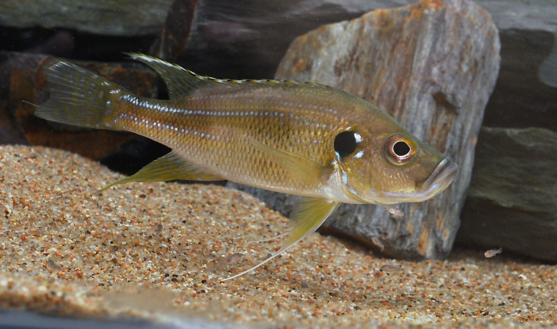 La riproduzione avviene in una buca scavata ai piedi di un grosso masso, si tratta di incubatori orali bi-parentali anche se a volte il maschio durante questa fase diventa molto aggressivo nei confronti della femmina. Le cure parentali sono molto estese da parte di entrambi i genitori i quali non esiteranno a riprendere in bocca gli avannotti in caso di pericolo, in questa fase l'aggressività del maschio si attenua drasticamente nei confronti della femmina.